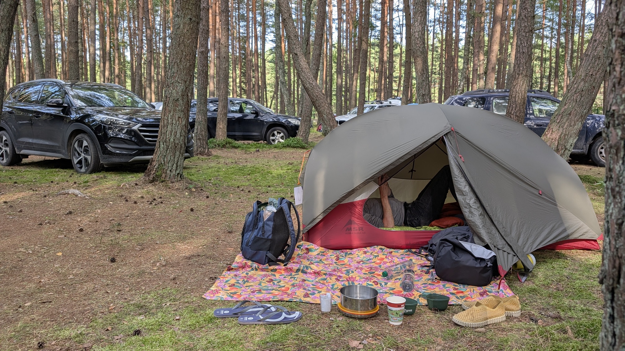 De trein naar Klaipėda vertrok bizar vroeg, om vijf uur zaten we er al in. Er rijden maar een paar treinen per dag, en de prettigere tijden waren volgeboekt. Maar, met de gratis brownie, koffie en een flesje water in de eerste klas maakte het toch een fijne luxe ervaring 😊. De zonsopkomst maakte het extra bijzonder.