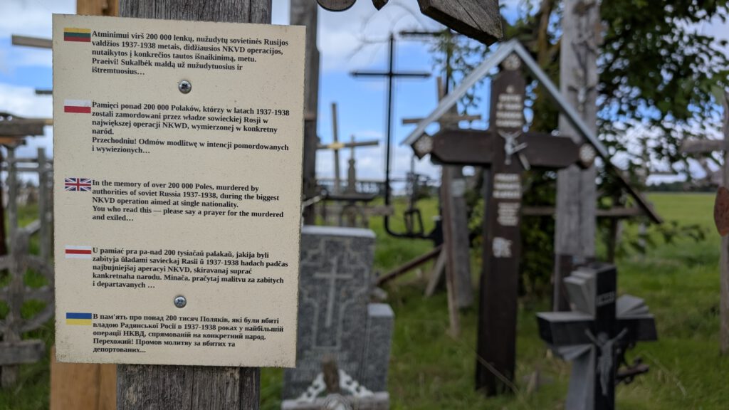 Sinds de 19e eeuw plaatsen mensen hier kruizen met de namen van hun geliefden. De Sovjets probeerden de heuvel keer op keer te vernietigen, met bulldozers, verboden en bewaken door de KGB, of door de plek onder water te zetten. Maar steeds keerden de kruizen terug.
