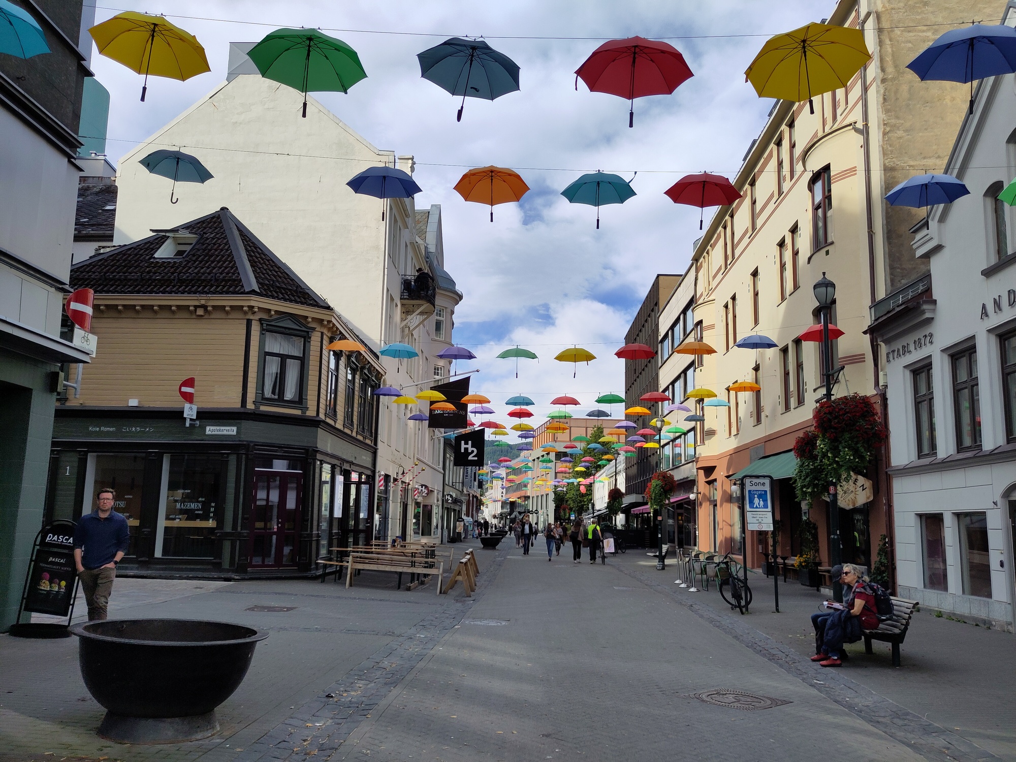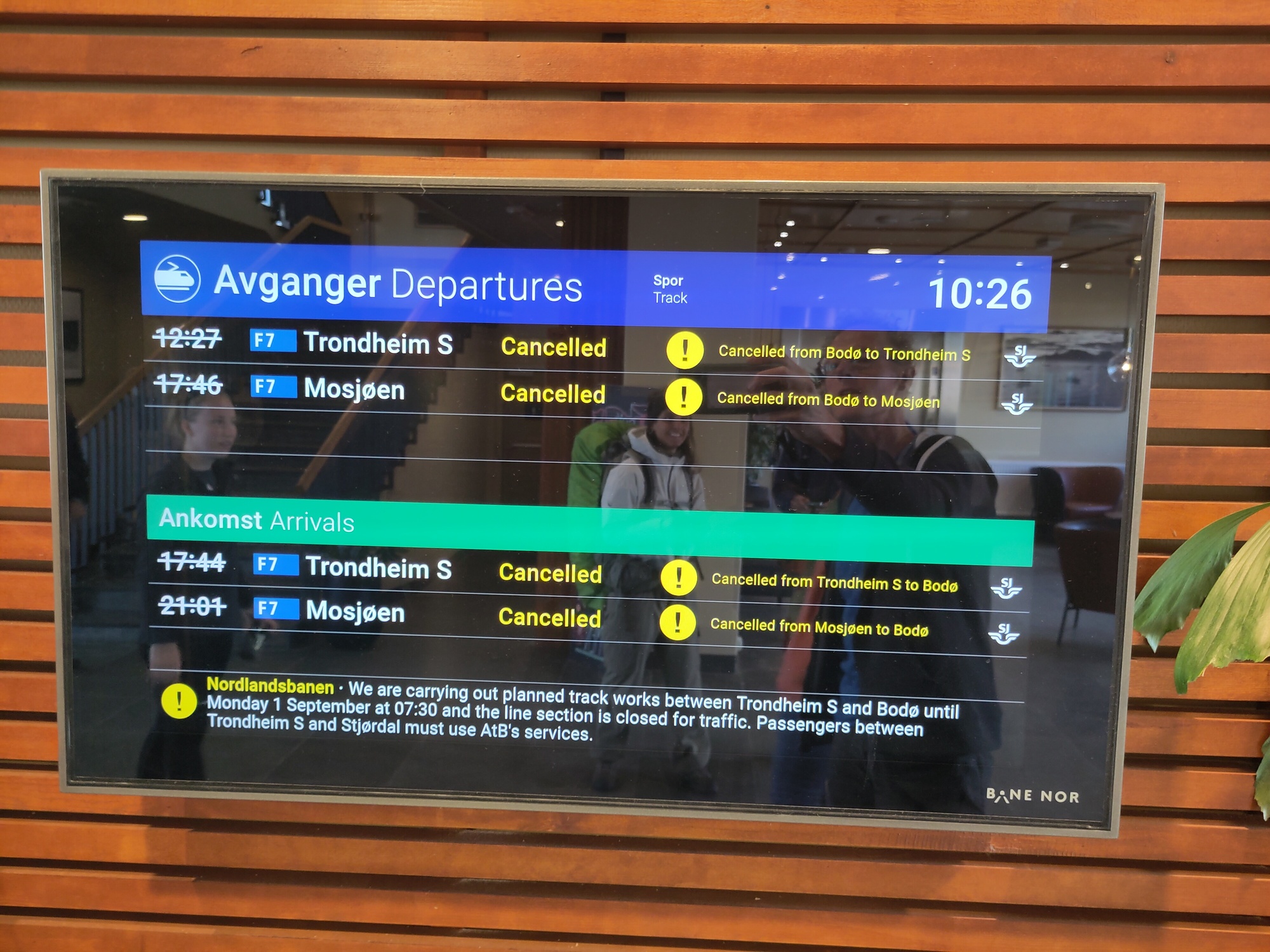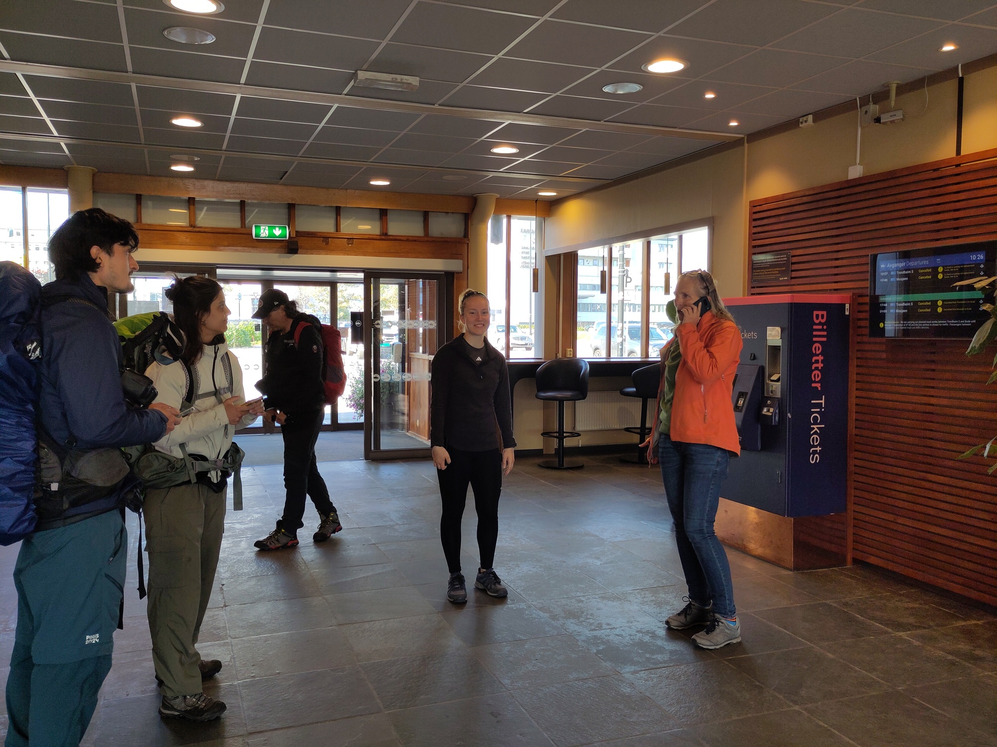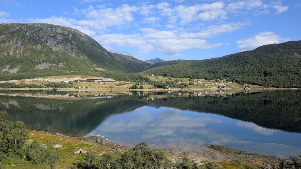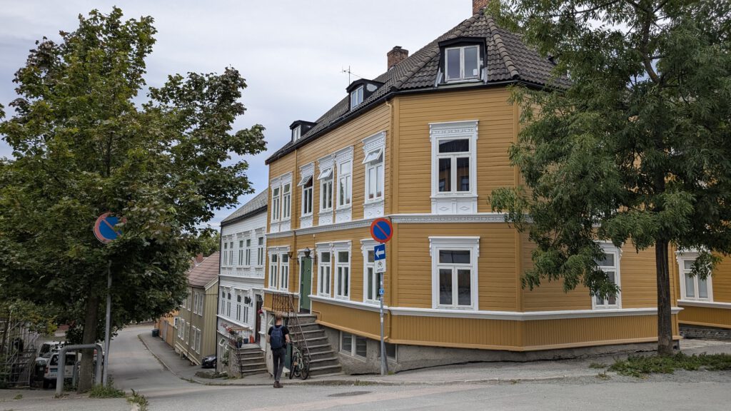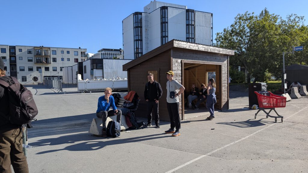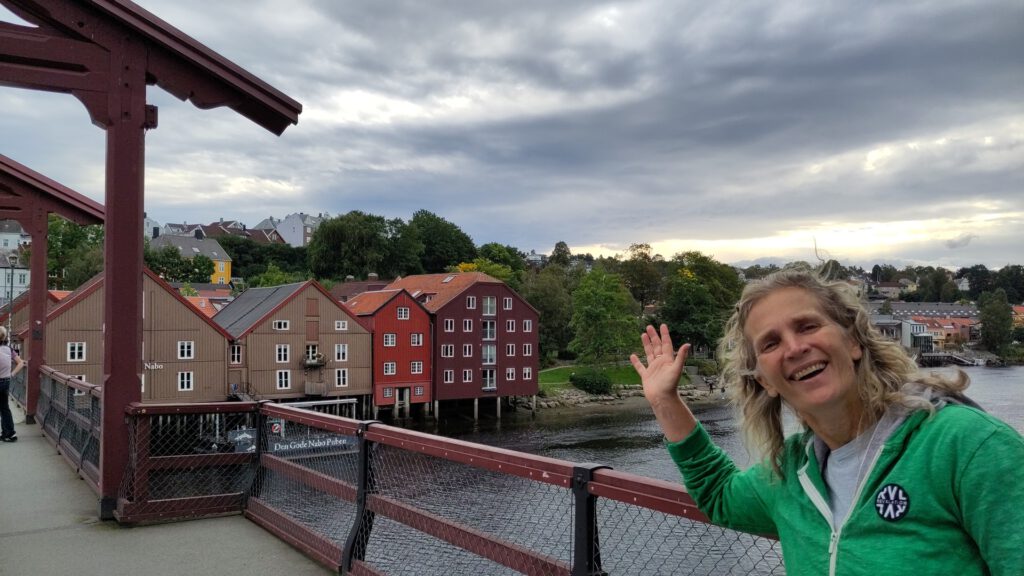 Vroeg in de ochtend, eerst een uurtje wandelen en toen een voorspoedige boottocht terug naar het vaste land. Maar daarna vormde een aardverschuiving de volgende uitdaging want spoorlijnen en autowegen bleken weggespoeld. Maar de trein werd vervangen door een bus die een omweg nam en met een kleine vertraging kwamen we keurig in Trondheim aan. Maar toen bleek dat onze Airbnb geen sleuteloverdracht geregeld had, zelfs niet als we op tijd waren geweest. Bovendien zaten door een congres in de stad veel hotels vol. Het was ondertussen middernacht, en na een lange reis van 1 uur wandelen, 3 uur boot en 11 uur bus waren we best moe. Na enig ronddwalen vonden we gelukkig een plek, en met een biertje in de bar was alles weer goed. De volgende dag kregen we via Airbnb compensatie, en konden we alsnog in het appartement verblijven voor de laatste nacht. Fijn dat Airbnb tussenbeide kwam en alles regelde!