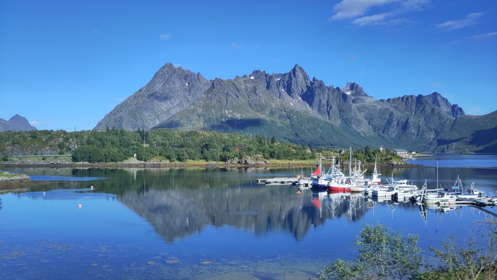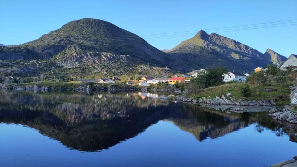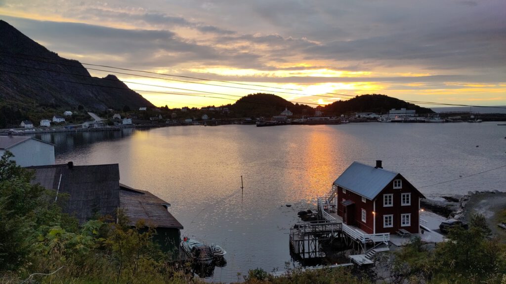 De Lofoten (een reeks eilanden voor de kust van Noorwegen) zijn prachtig, maar we besluiten er snel doorheen te reizen. Je kan er fantastisch hiken, maar dat is geen optie vanwege mijn enkelblessures. De kou maakt kamperen minder aantrekkelijk dus ben je aangewezen op dure hotels. Om toch nog wat te zien en het betaalbaar te houden gaan we in één dag met de bus van Narvik naar het einde van de Lofoten. Daar overnachten we en gaan we met de boot terug naar het vasteland.