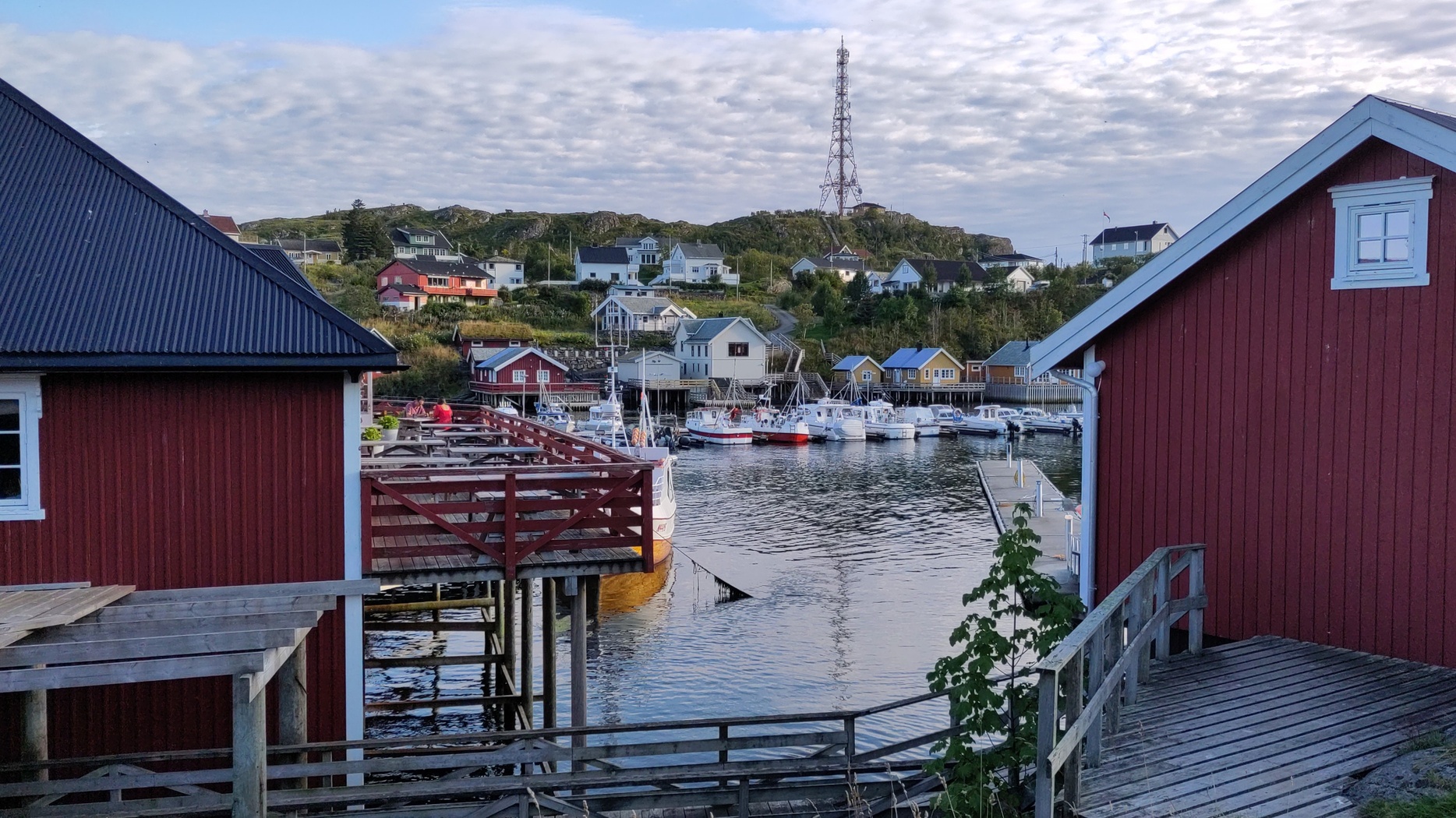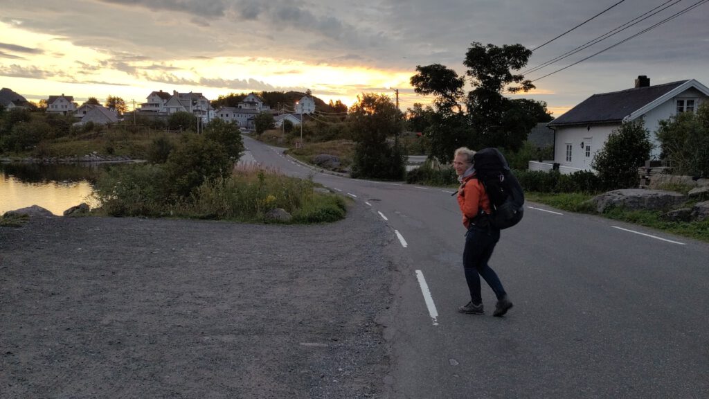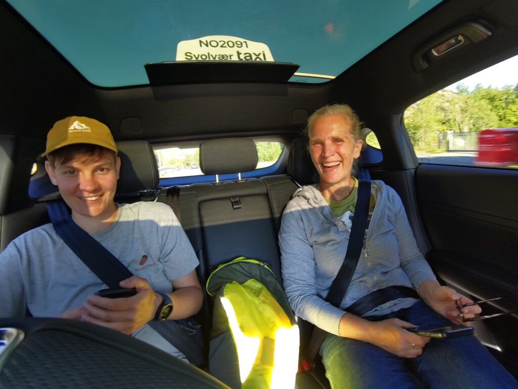 Halverwege de Lofoten moesten we overstappen naar een andere bus, maar onze eerste bus had vertraging. De chauffeur zei dat de aansluitende bus altijd wacht, maar na een tijdje begonnen we te vermoeden dat deze toch vertrokken was. Een Noorse passagier belde de busmaatschappij, en inderdaad, de bus was al weg. Het bleek een zzp’er die zich niet aan de regels hield. Maar, om claims te voorkomen regelde de maatschappij een taxi. We werden in 2,5 uur 120 km verderop naar Moskenes gebracht, met een kostenplaatje van zo’n 500 euro voor de maatschappij. Goede service! Uiteindelijk kwamen we wel te laat aan en na een snel rondje wandelen gingen we zelf maar pasta maken, want de restaurants waren al dicht.
