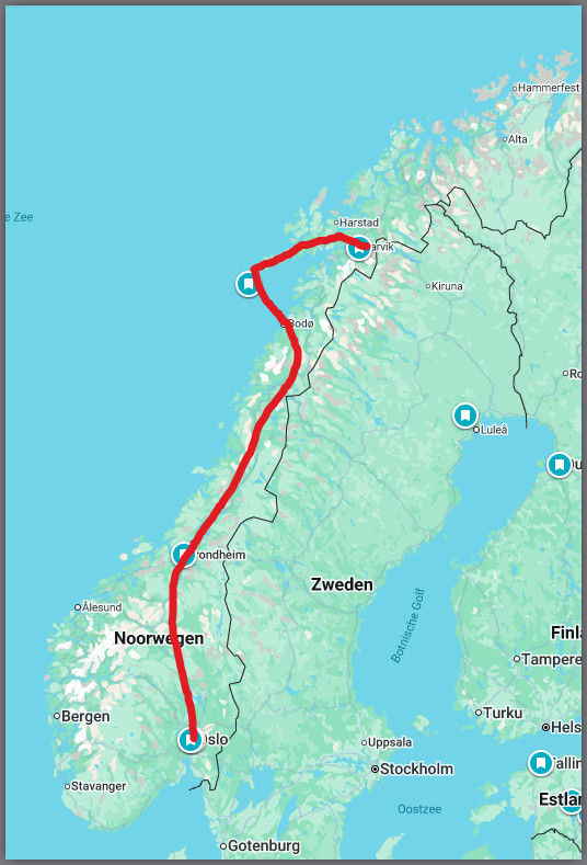 Vanuit Narvik reizen we zuidwaarts, via de Lofoten naar Oslo, een tocht met de nodige ‘uitdagingen’.