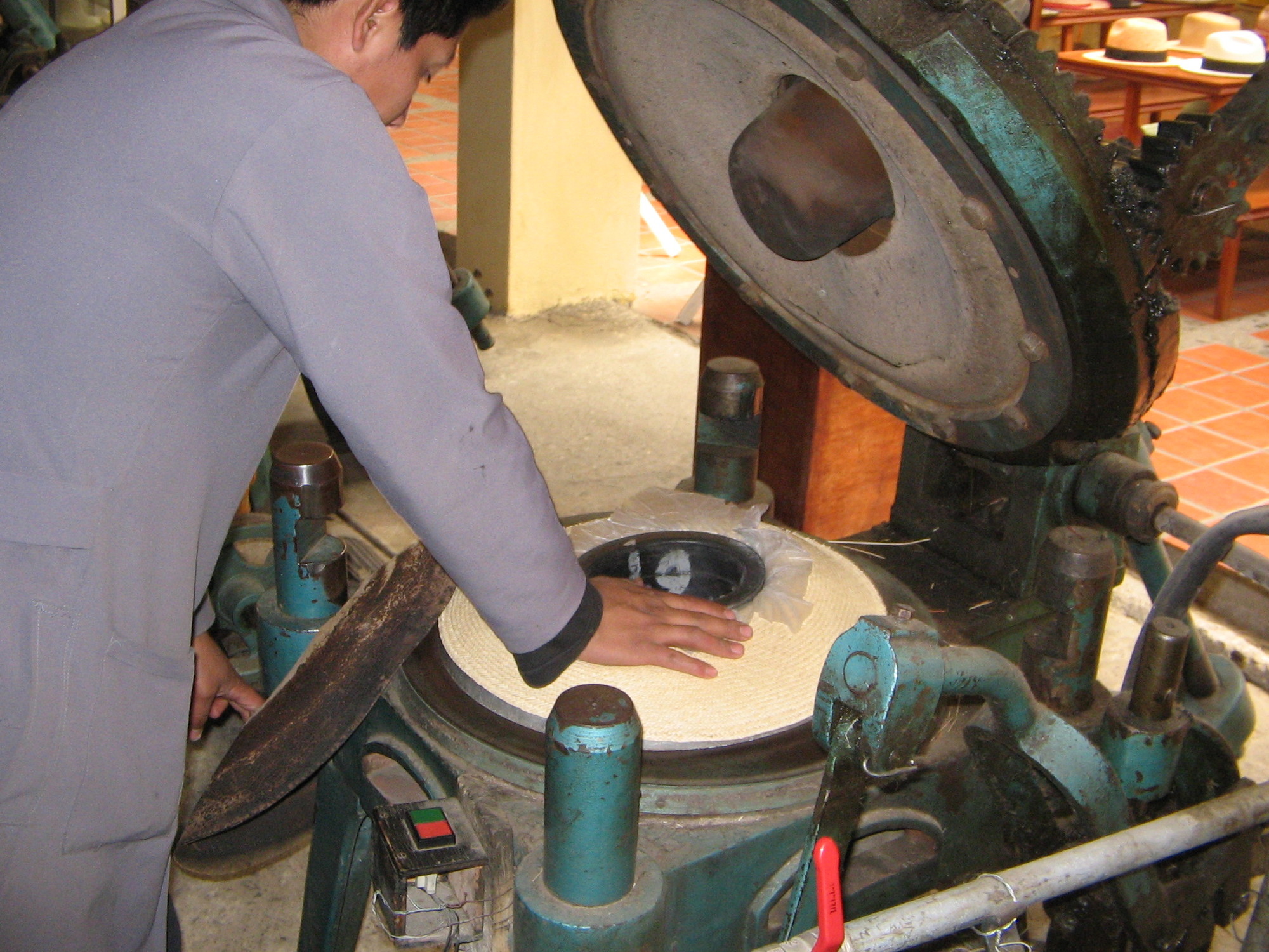 IMG 1984 Moderne machine waarmee de vorm in de panamahoed wordt gemaakt